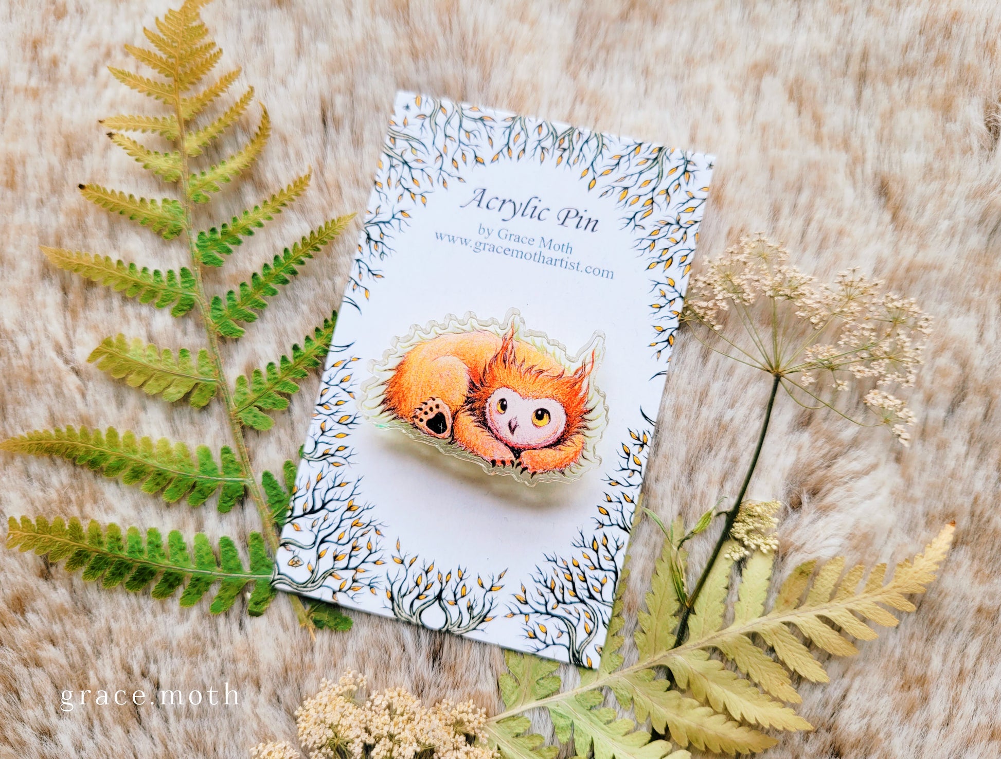Owlbear Cub illustrated pin, recycled clear acrylic, by Grace Moth - BG3 Baldurs Gate, Gaming inspired