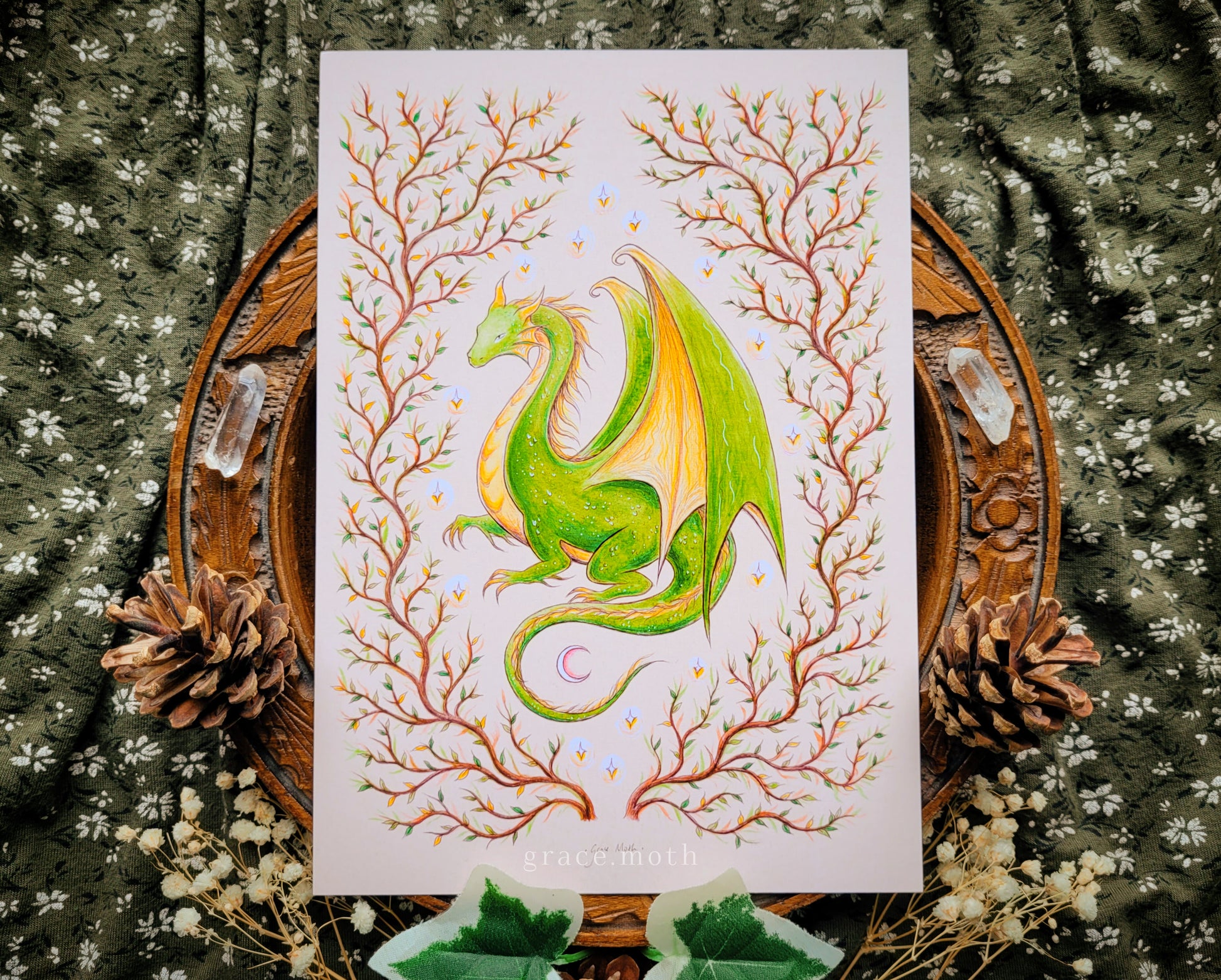 Nature Dragon - A5, A4 or A3 Art print illustrated by Grace Moth