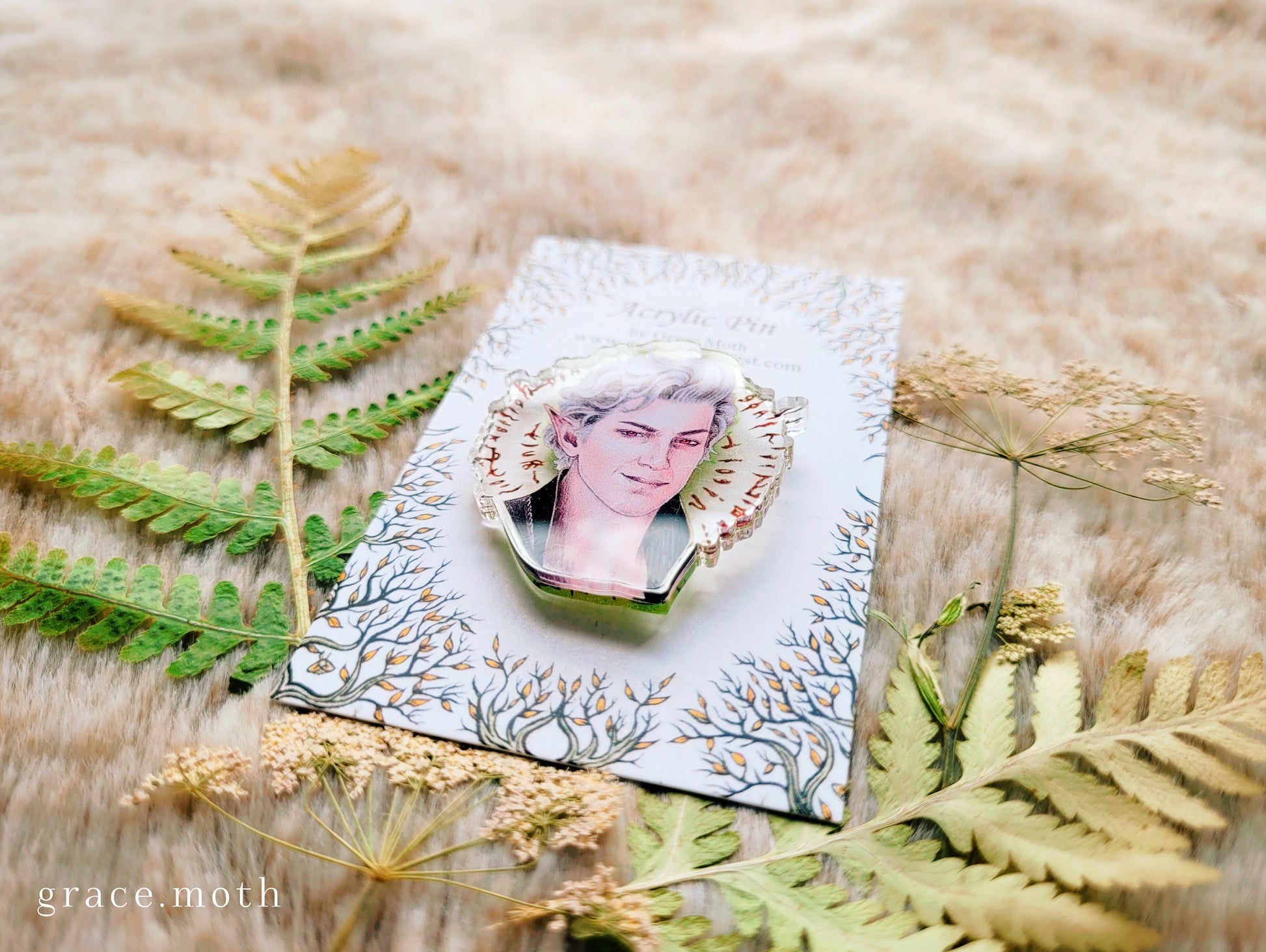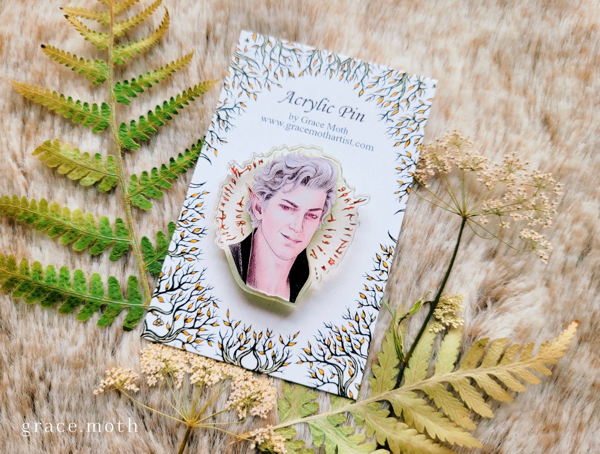 Astarion illustrated pin, recycled clear acrylic, by Grace Moth - BG3 Baldurs Gate, Gaming inspired