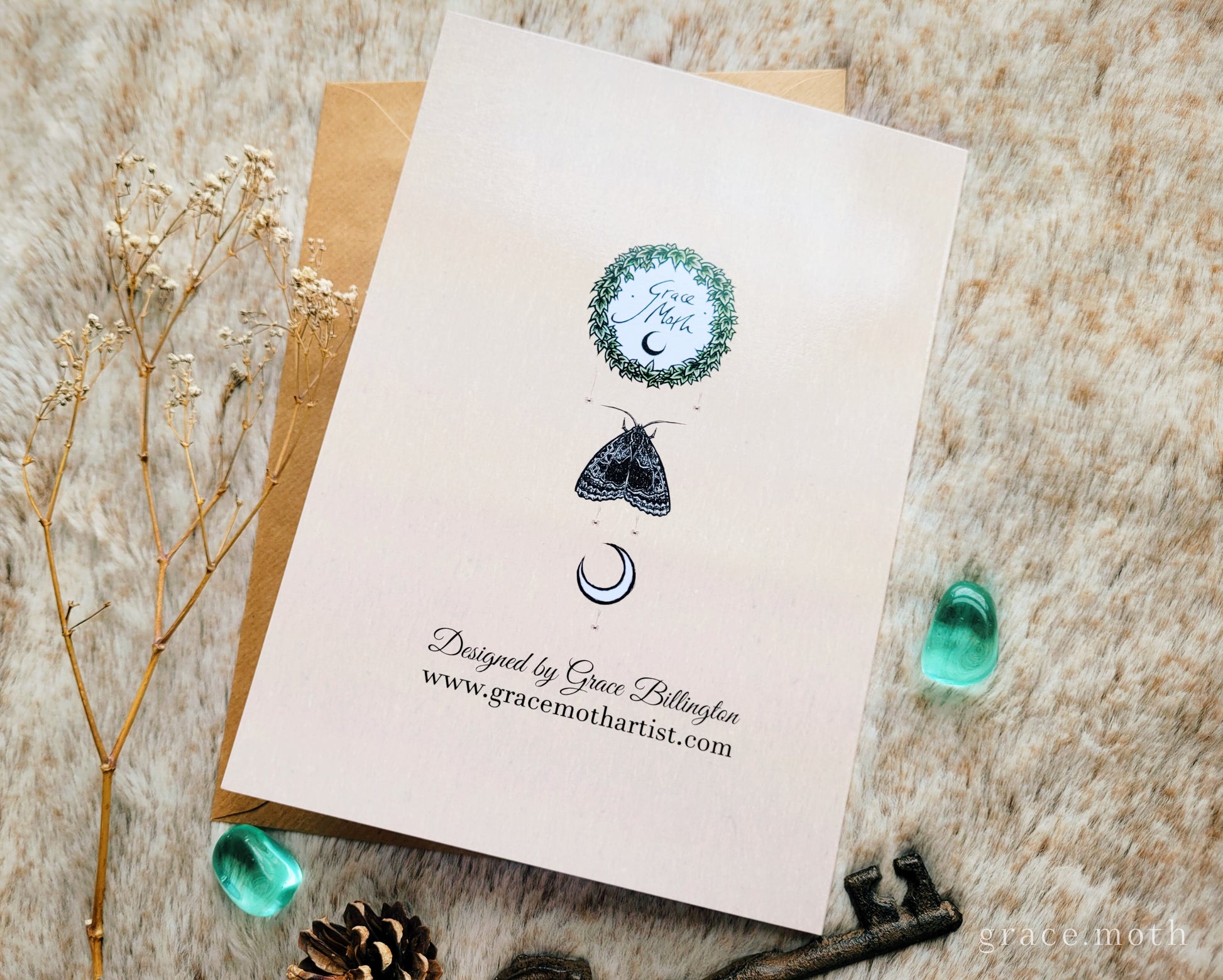 A5 sized handmade card, professionally printed on heavyweight 350gsm gloss coated stock (uncoated and blank on the inside for you to write your message!)