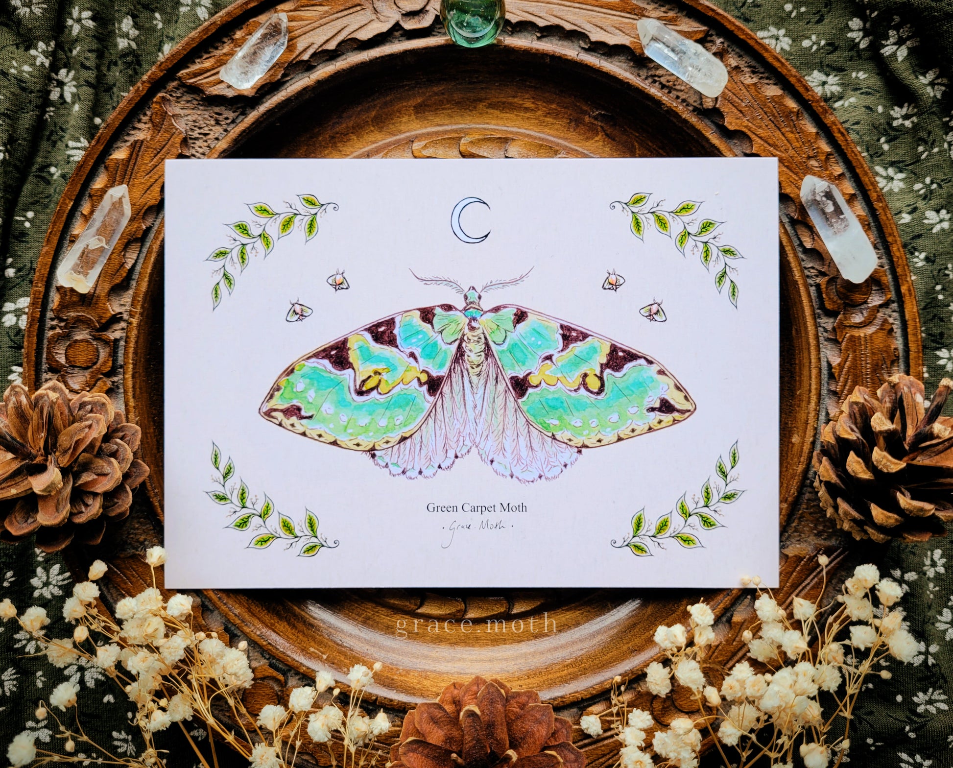 Green Carpet Moth - A6 print Illustrated by Grace Moth - 5.8 x 4.1 - Entomology