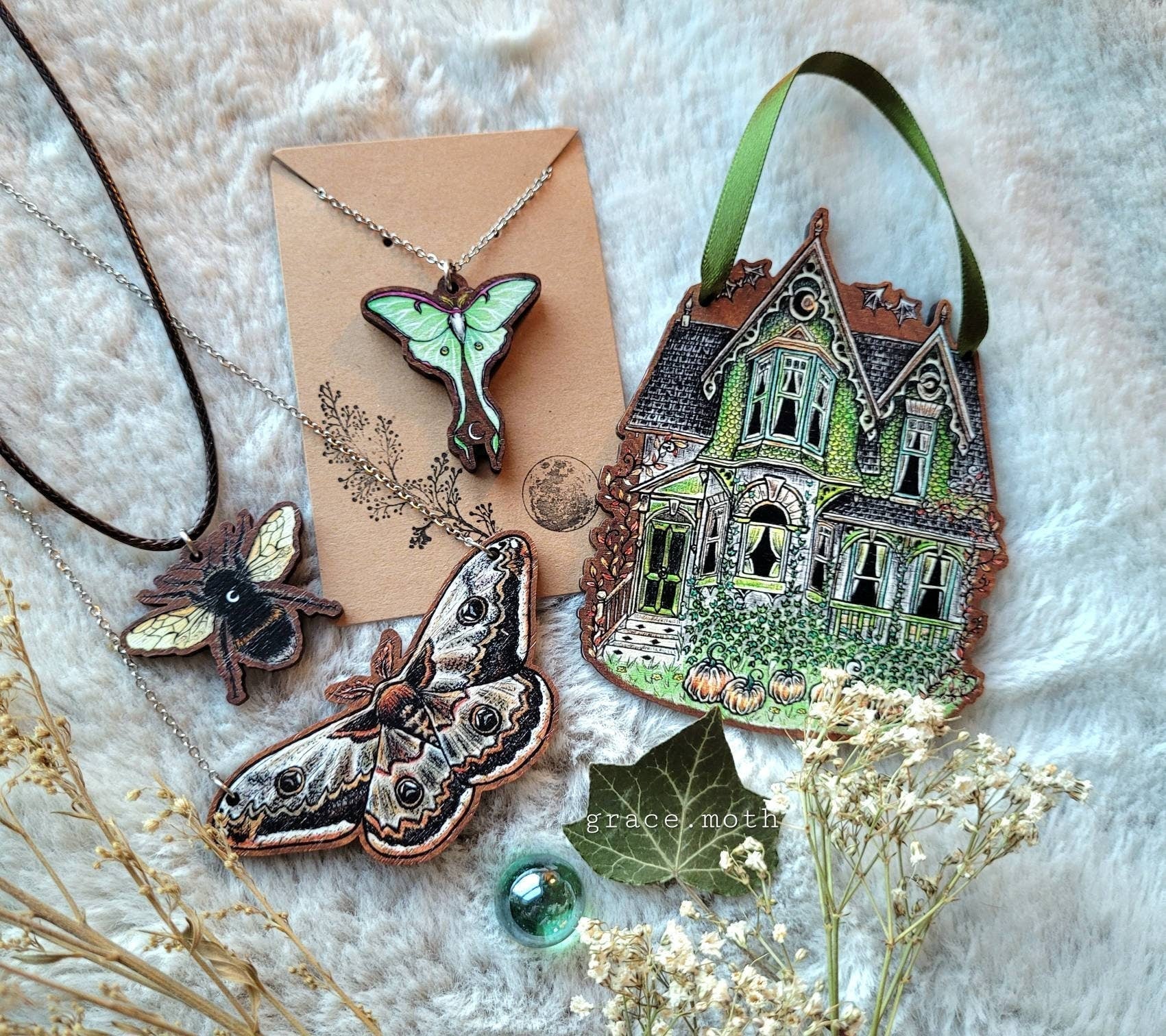 Please note that these pendants are not toys, and extra care should be taken when handling and storing. Not suitable to be submerged in water. Due to the nature of wood jewellery, each piece will be unique and have their own characteristics/wood grain patterns.